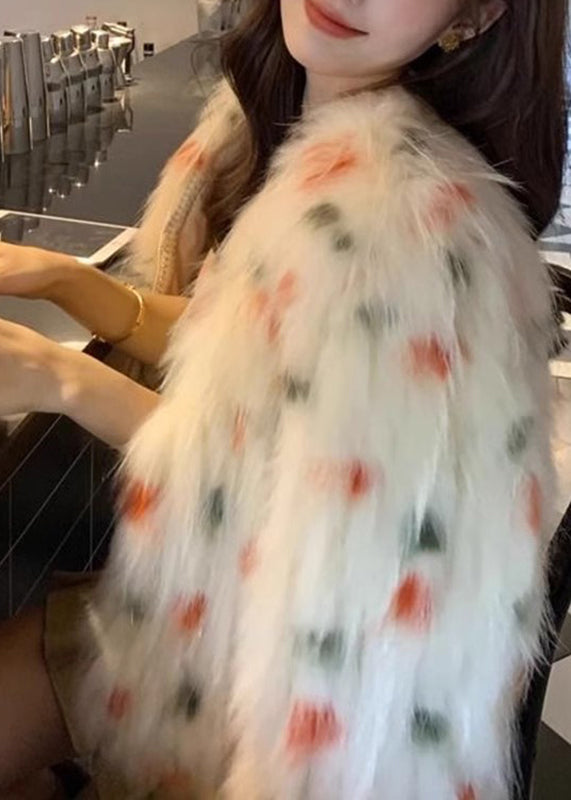 Cute Apricot V Neck Raccoon Hair Print Leather And Fur Coats Winter RD010