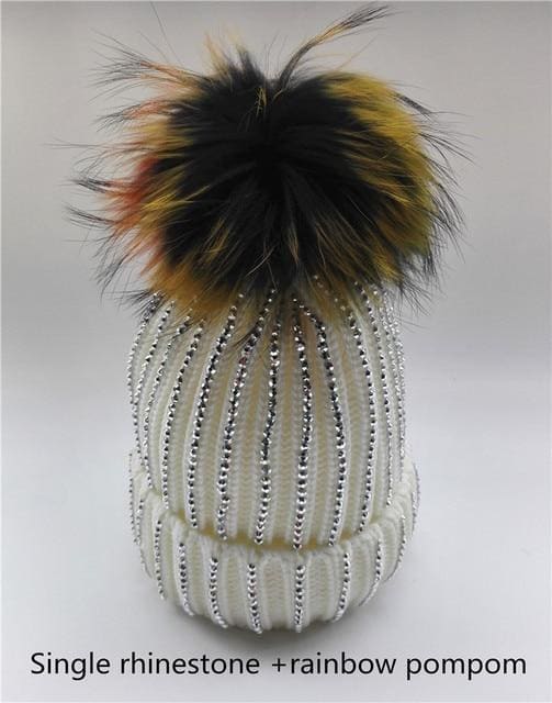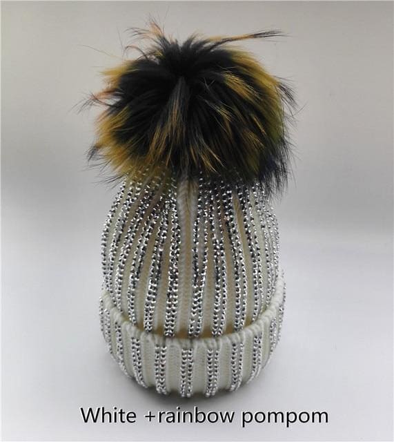 Winter Warm Fur Pom pom Knitted Hats