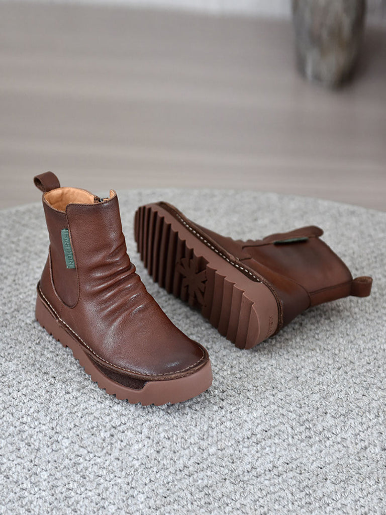 Elevate your wardrobe with our Women Autumn Vintage Leather Spliced Ankle Boots. Crafted with premium leather and a vintage-inspired design, these boots exude sophistication and exclusivity. Perfect for adding a touch of luxury to any outfit, while providing all-day comfort and durability. Step out in style with these timeless, artfully crafted boots.