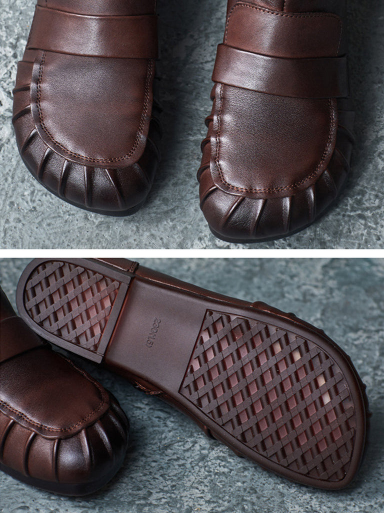 Women Vintage Winter Genuine Leather Spliced Ankle Boots QU001