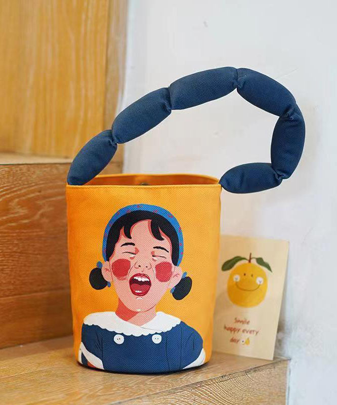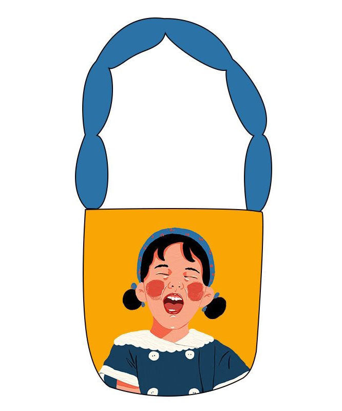 Casual Yellow Cute Girl Print Patchwork Canvas Tote Handbag LY1375