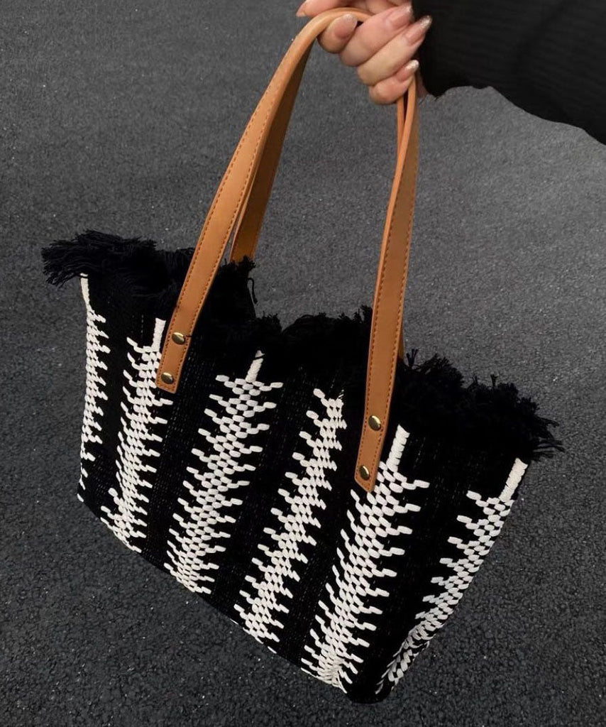 Style Green Tassel Knit Fabric Canvas Tote Handbag