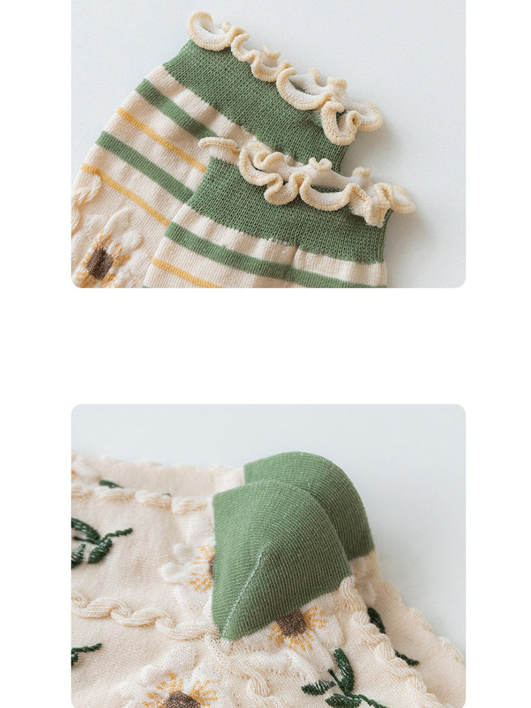 5 Pairs Women Artsy Flower Green Mid-Calf Socks IO1011
