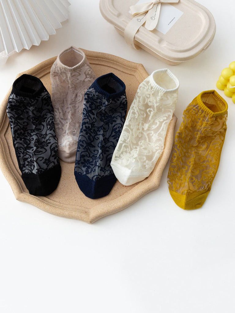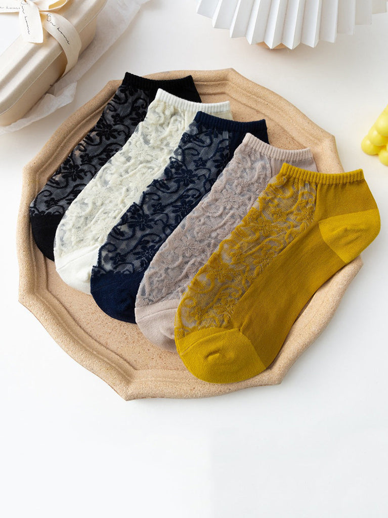 5 Pairs Women Flower Jacquard Summer Socks AA1026
