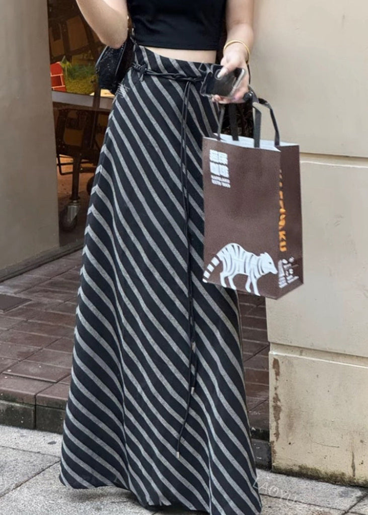 Apricot Cotton Skirts Waist Art Striped High Summer