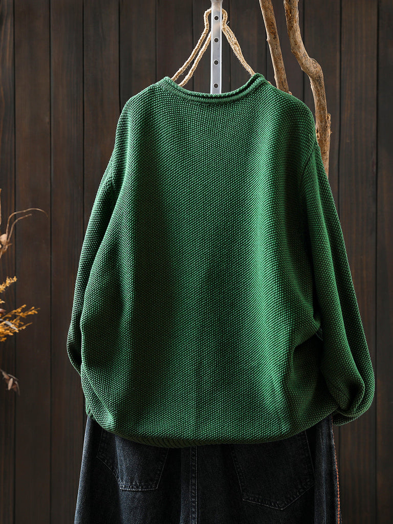 Artsy Sweater Women O-Neck Pocket Patch Knitted Autumn