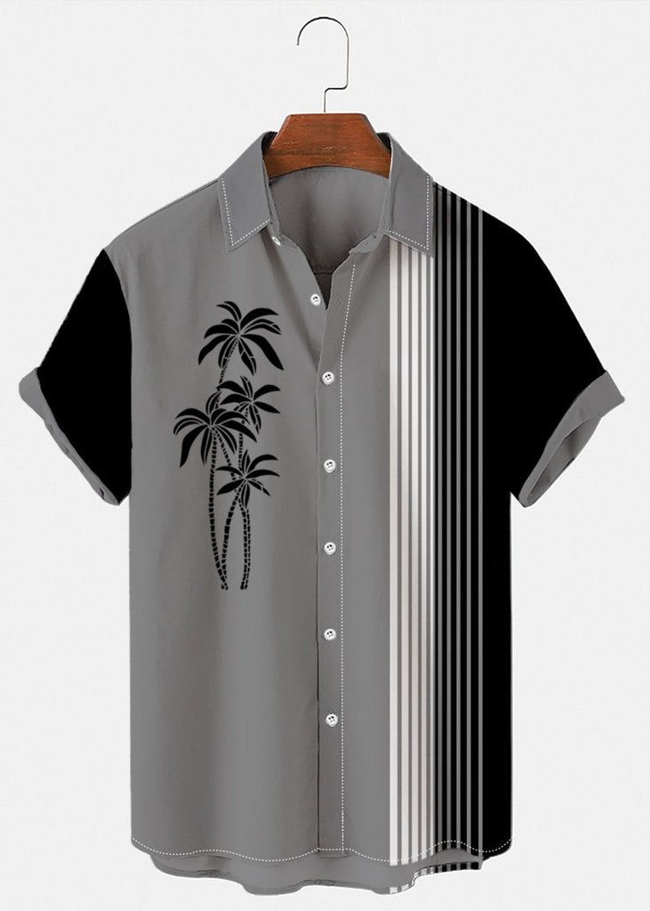 Art Blue Asymmetrical Striped Patchwork Cotton Mens Shirts Summer