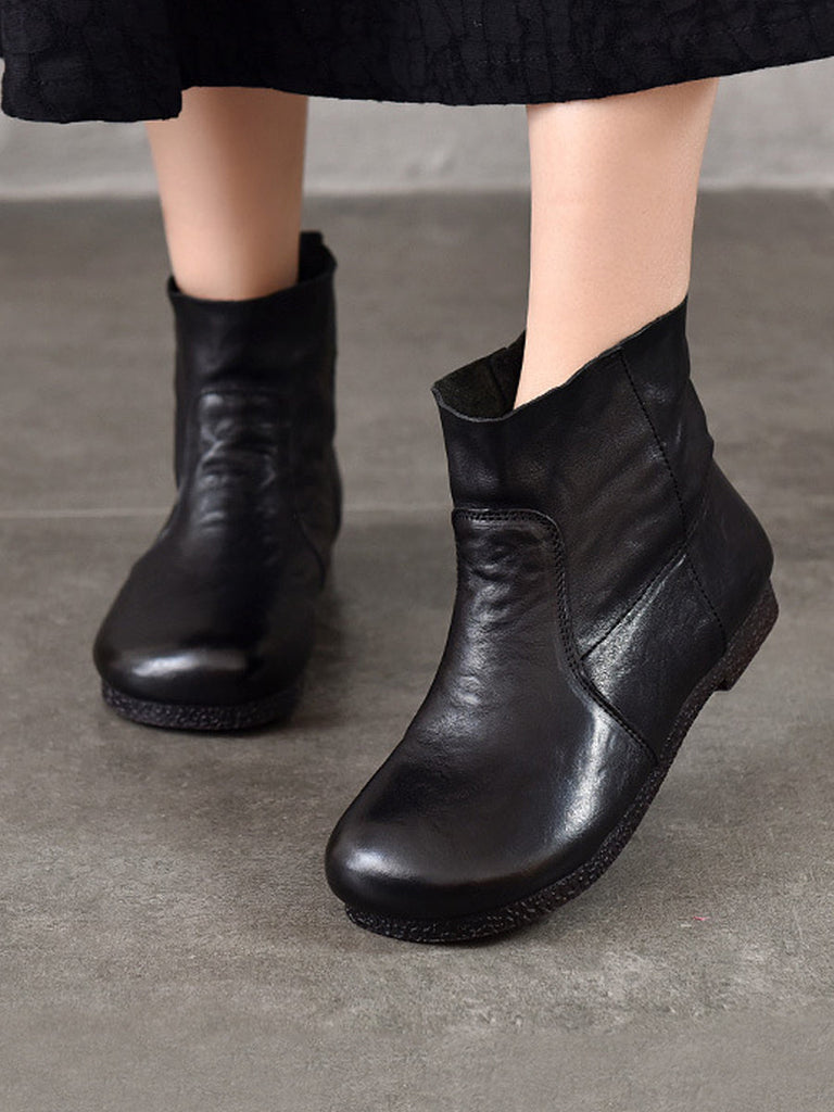 Autumn Women Soft Boots Leather Heel Low Genuine