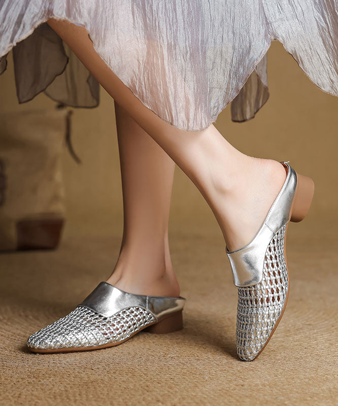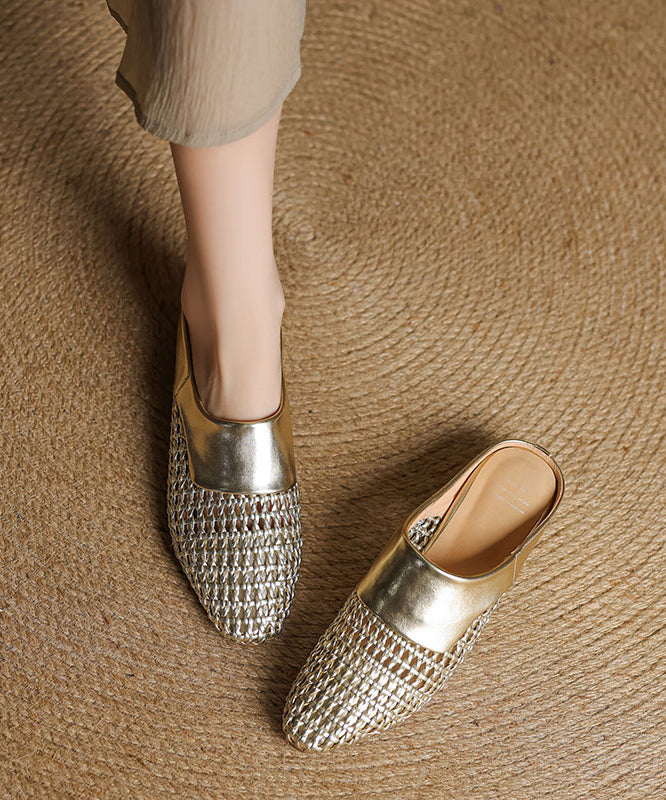Black Splicing Sheepskin Slide Classy Breathable Out Hollow FashionChic