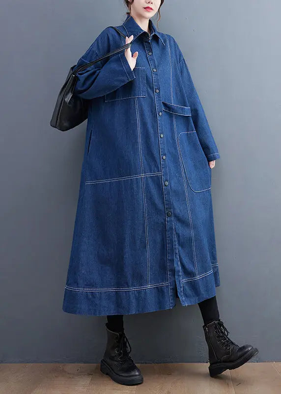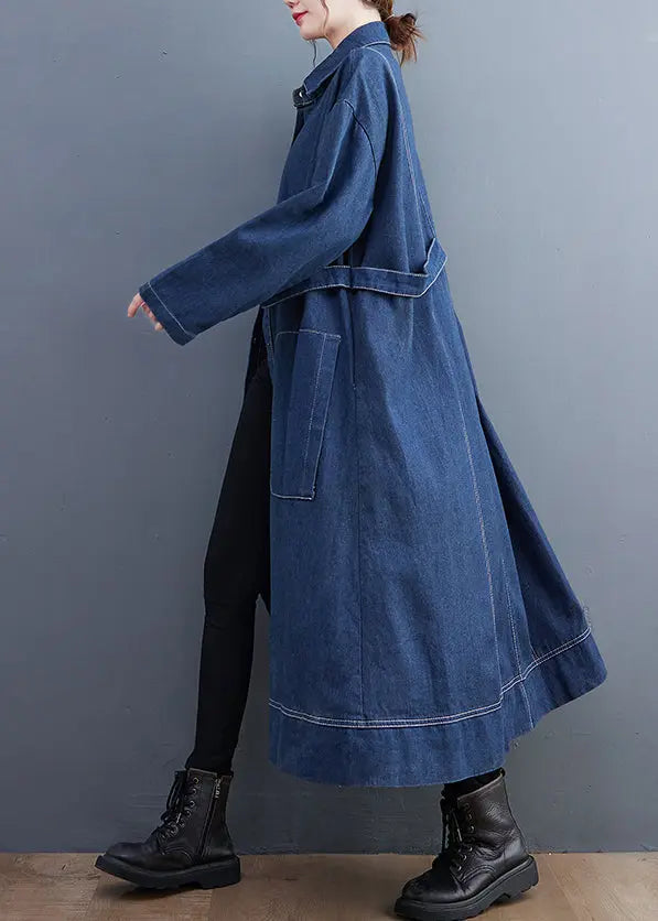 Complete your chic and edgy look with our Denim Long Trench Coat. Made from durable denim, this coat will keep you stylish and protected. Perfect for any season, this coat features a classic trench design with a modern twist. Dress it up or down for endless fashion possibilities.
