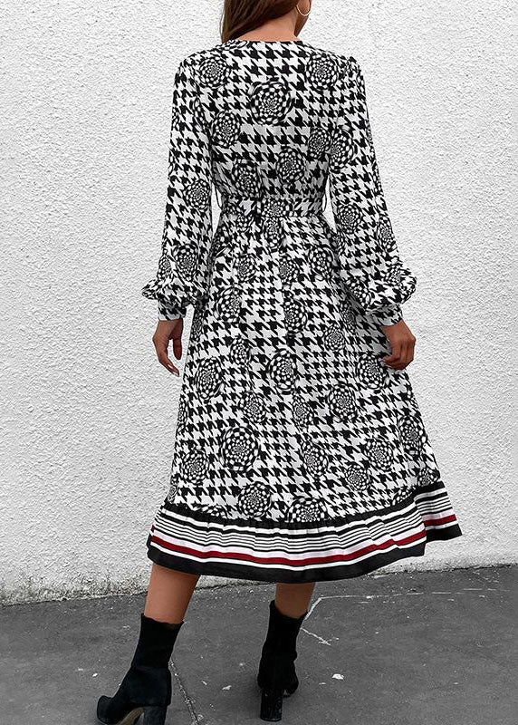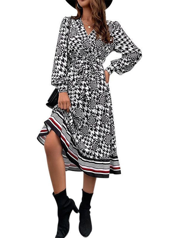 Bohemian Black V Neck Print Patchwork Chiffon Dresses Spring LY1921