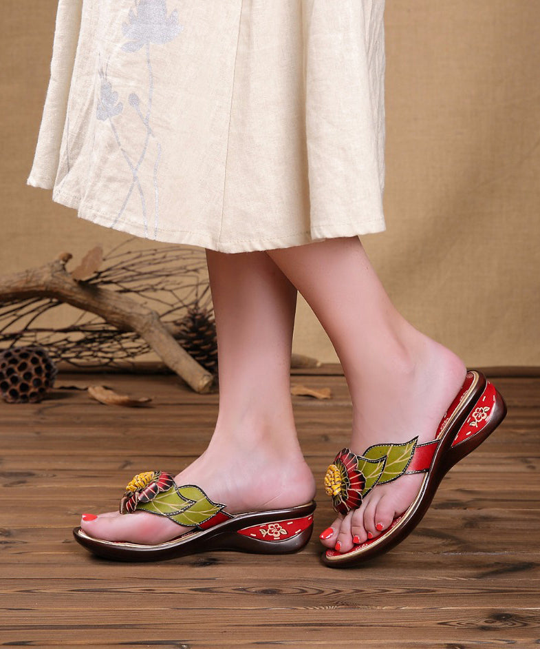 Bohemian Handmade Floral High Wedge Heels Flip Flops RT1014