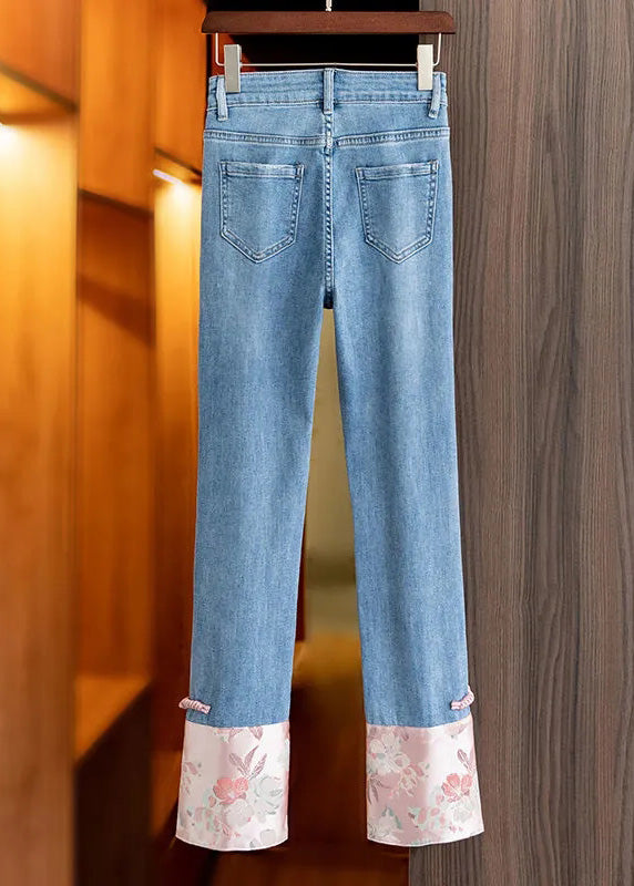 Boho Blue Patchwork Pink High Waist Straight Jeans
