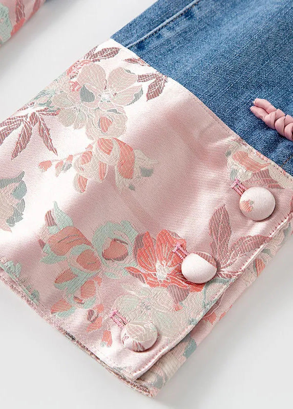 Boho Blue Patchwork Pink High Waist Straight Jeans TY1061