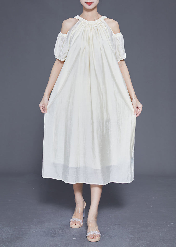 Boho White Cold Shoulder Original Design Silk Long Dress Summer LY1839