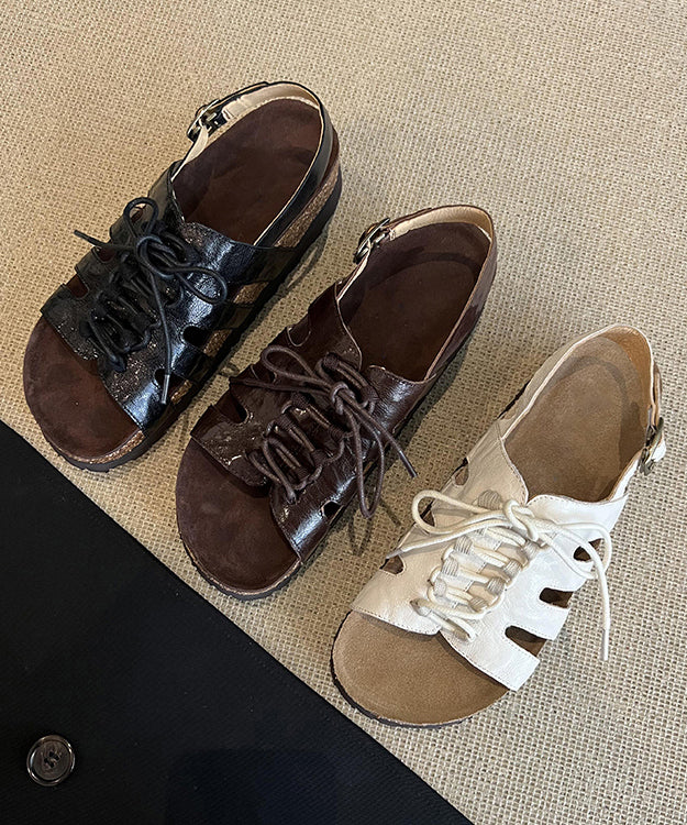 Brown Hollow Out Lace Up Splicing Platform Sandals Peep Toe