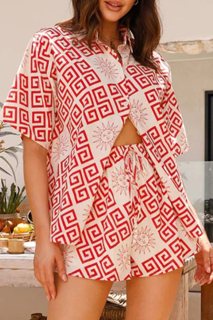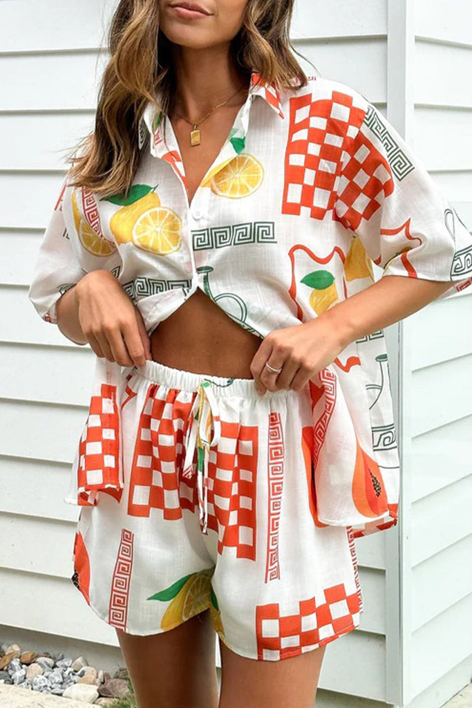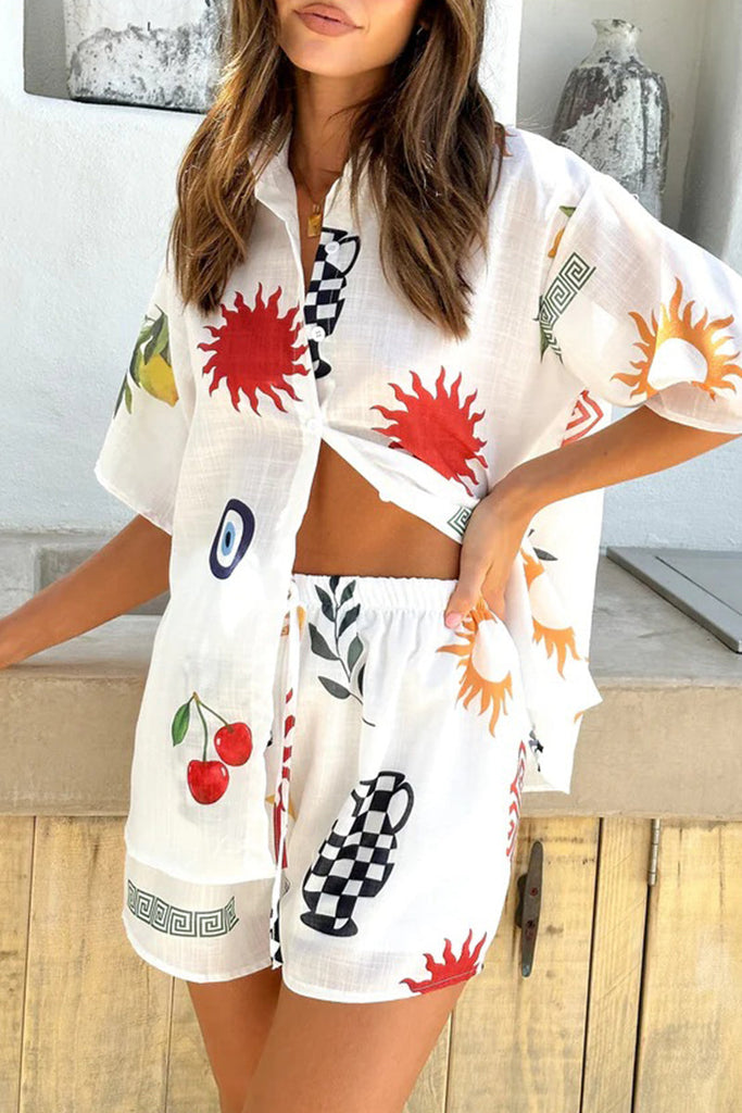 Imagine if you could be satisfied and content with your purchase. That can very much be your reality with the Casual Graffiti Cartoon Print Turndown Collar Short Sleeve Two Pieces RE5229.