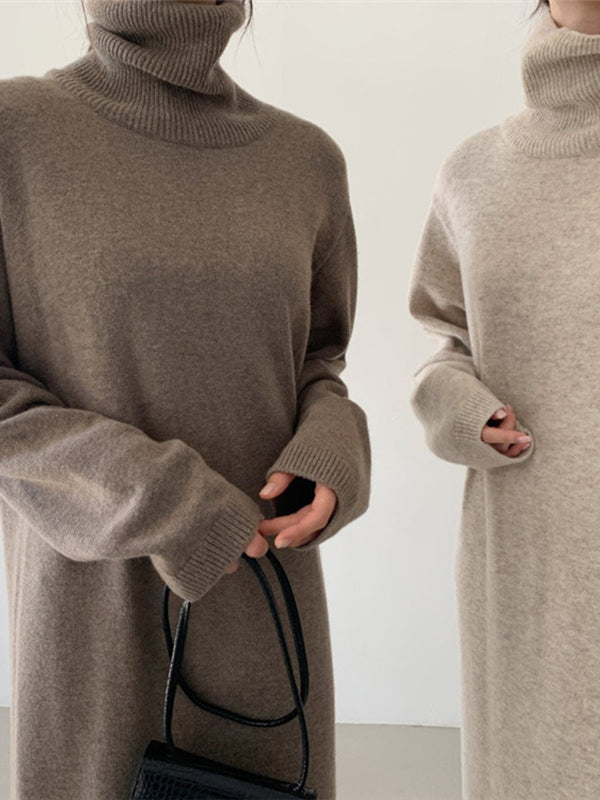 The Casual Khaki High-Neck Long Sleeve Sweater Dress AN1061 is far and away, one of our most popular items. People can't seem to get enough of it.