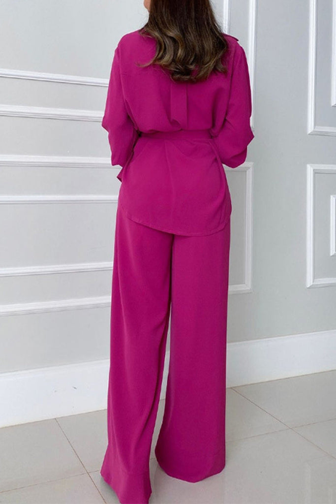 Imagine if you could be satisfied and content with your purchase. That can very much be your reality with the Casual Solid Bandage Turndown Collar Long Sleeve Two Pieces GJ002.