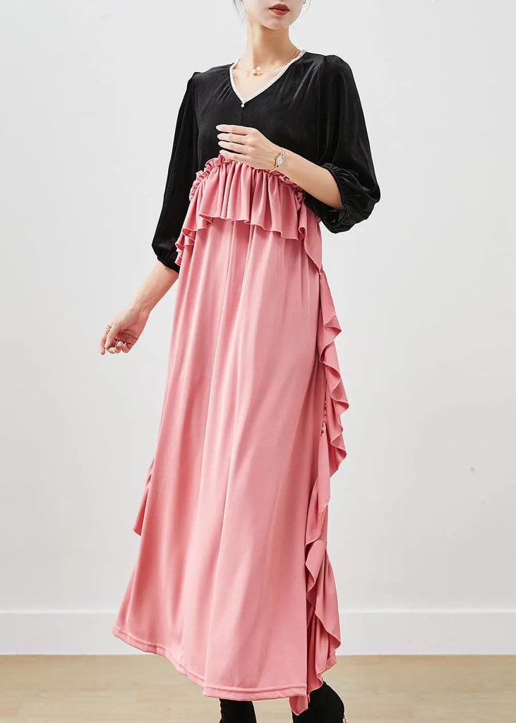 Ruffled Silk Velour Long Dress Fall