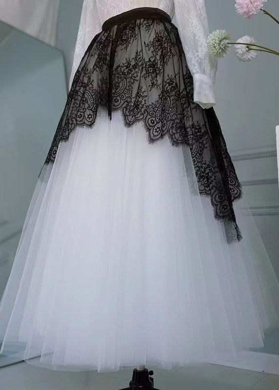 Chic Yellow Lace Elastic Waist Patchwork Tulle Skirts Summer AB1024