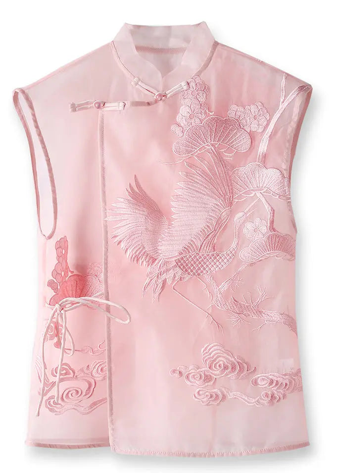 Chinese Style Embroidered Lace Up Waistcoat Sleeveless