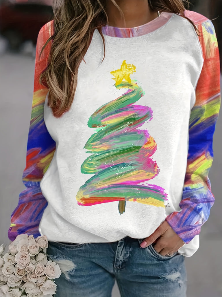 Christmas Tree Print Pullover Sweatshirt RK6301