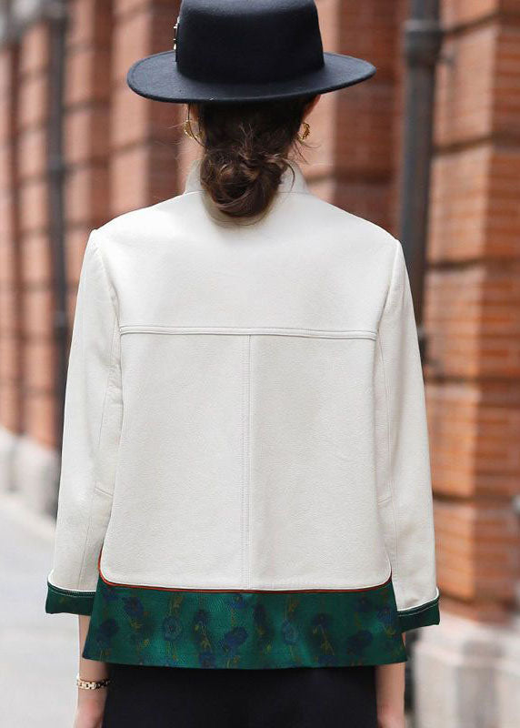 Classy Beige Chinese Button Patchwork Faux Leather Coats Spring