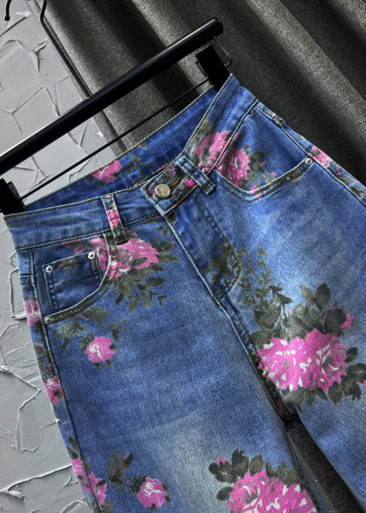 Cute Light Blue Print High Waist Straight Jeans Summer