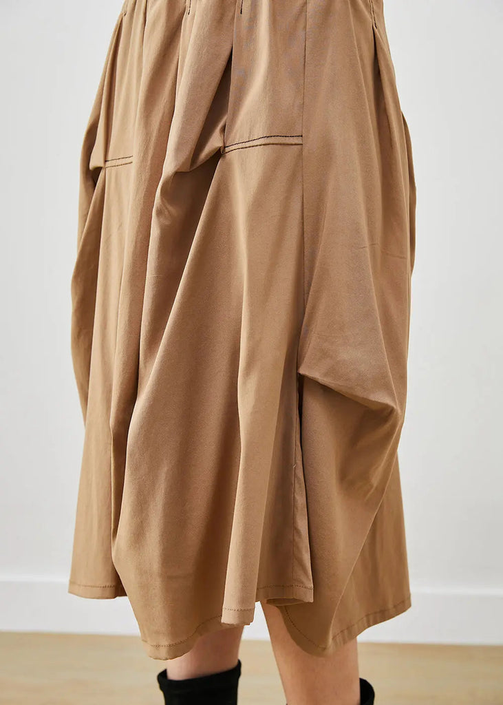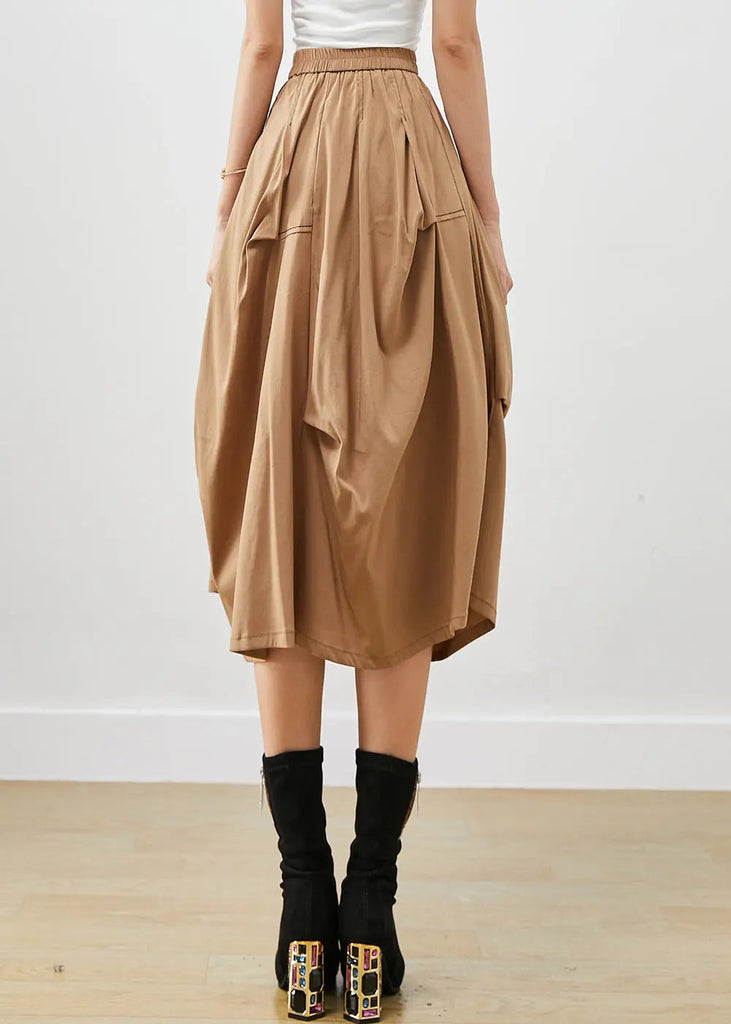 Khaki Asymmetrical Cotton Skirt Fall