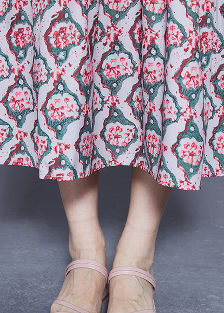 DIY Ruffled Lace Up Print Silk Long Dress Spring