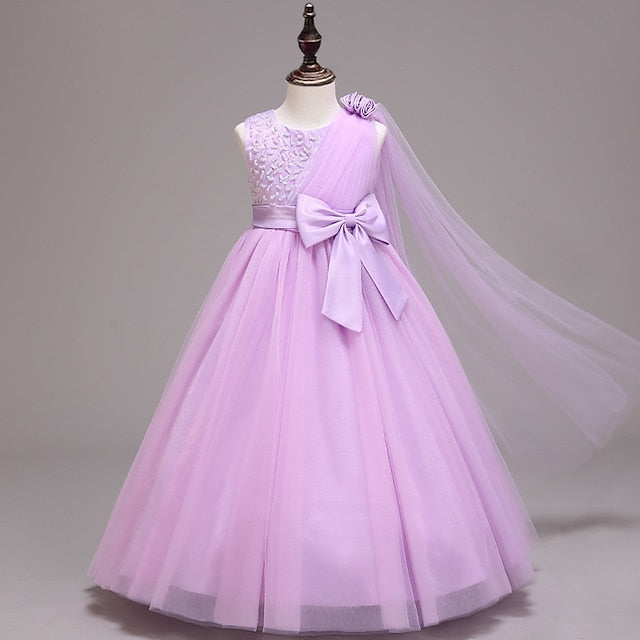 Gender: Girls', Age Group: Kids, Style: Sweet, Princess, Occasion: Party, Wedding, Performance, Kids Apparel: Flower Girl Dress, Dress, Fabric: Tulle, Cotton, Pattern: Solid Colored, Sleeve Length: Sleeveless, Design: Embroidered, Mesh, Bow, Age: 4-13 Years, Look After Me: Hand wash, Season: Summer, Dresses Type: Flower Girl's Dress, Pink Princess Dress, A Line Dress, Fit Type: Regular Fit, Dress Length (cm): Asymmetrical,