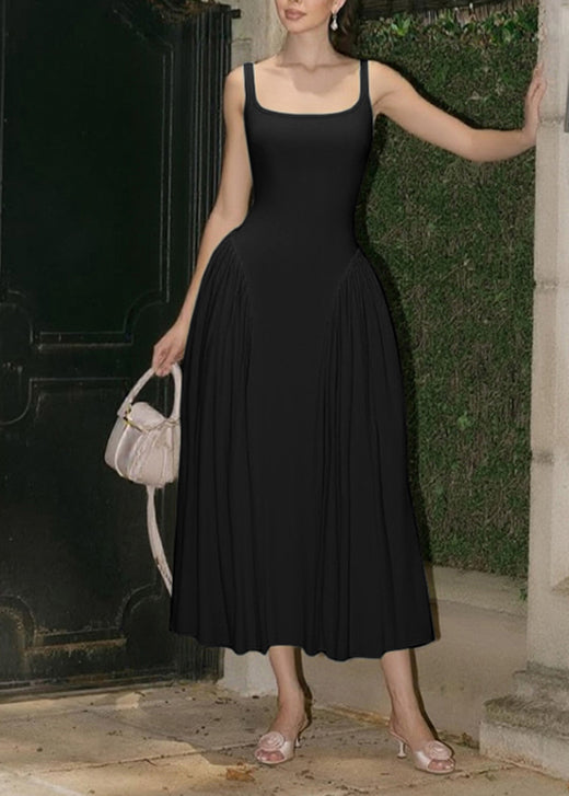 Women Yellow Square Collar Wrinkled Patchwork Cotton Dress Summer