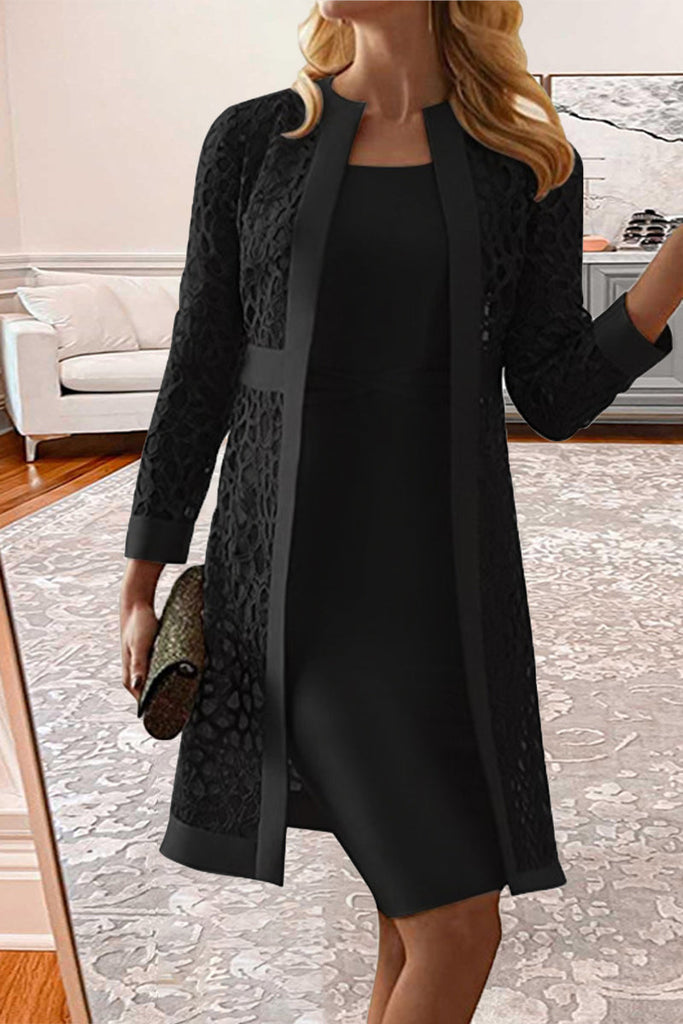 Elegant Solid Lace Hollowed Out Long Sleeve Two Pieces TY8522