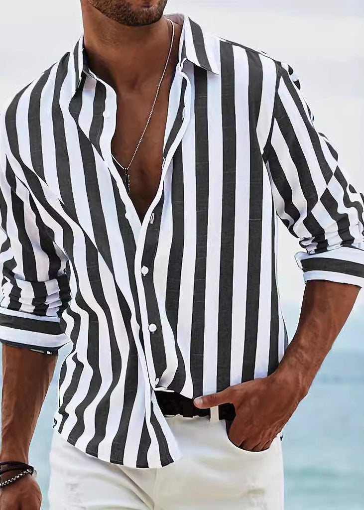 Fall Peter Striped Collar Cotton Shirts Button Red Men Pan