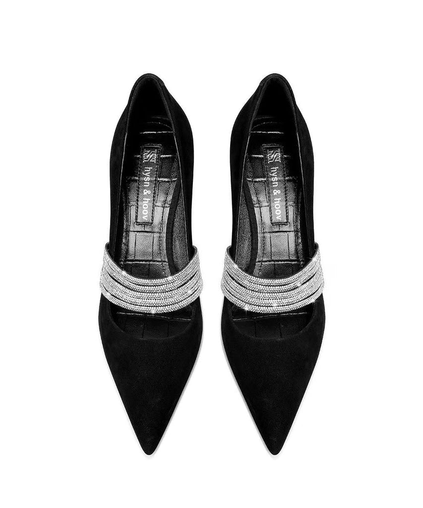 Elevate your style with these Fashionable Black Zircon Pointed Irregular Heel Sandals, exquisitely crafted for the refined and discerning fashionista. The striking combination of black zircon and pointed heel make these sandals a statement piece, perfect for any upscale event. Unleash your inner elegance and sophistication with these must-have sandals.