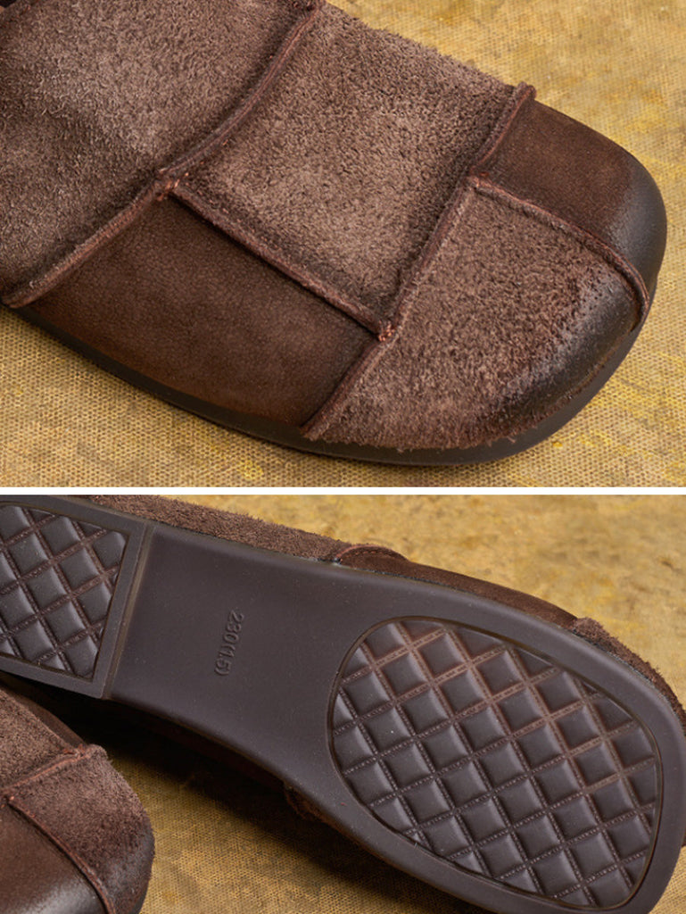 Flat Shoes Leather Vintage Women Autumn Spliced