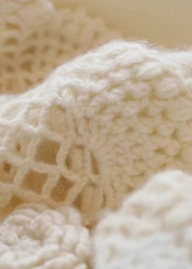 Indulge in elegance with our Floral White Hollow Out Patchwork Cotton Knit Top. Made from soft and cozy cotton, this long-sleeved knit is gentle, comfortable, and sweetly refined. Embrace a graceful and sophisticated look with delicate floral details.