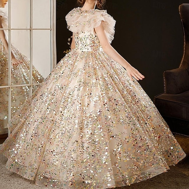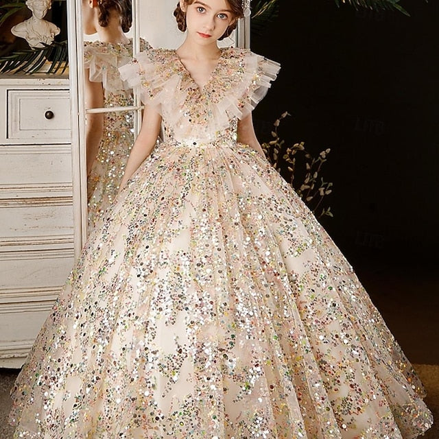 Gender: Girls', Age Group: Kids, Style: Sweet, Princess, Occasion: Performance, Wedding, Party, Kids Apparel: Flower Girl Dress, Party Dress, Fabric: Mesh, Pattern: Solid Color, Sleeve Length: 3/4 Length Sleeve, Design: Mesh, Age: 2-12 Years, Season: Summer, Fall, Spring, Look After Me: Hand wash, Elasticity: Inelastic, Fit Type: Tailored Fit, Dresses Type: Sheath Dress, Tulle Dress, Flower Girl's Dress, Dress Length (cm): Mid-Calf, Neckline: Crew Neck,