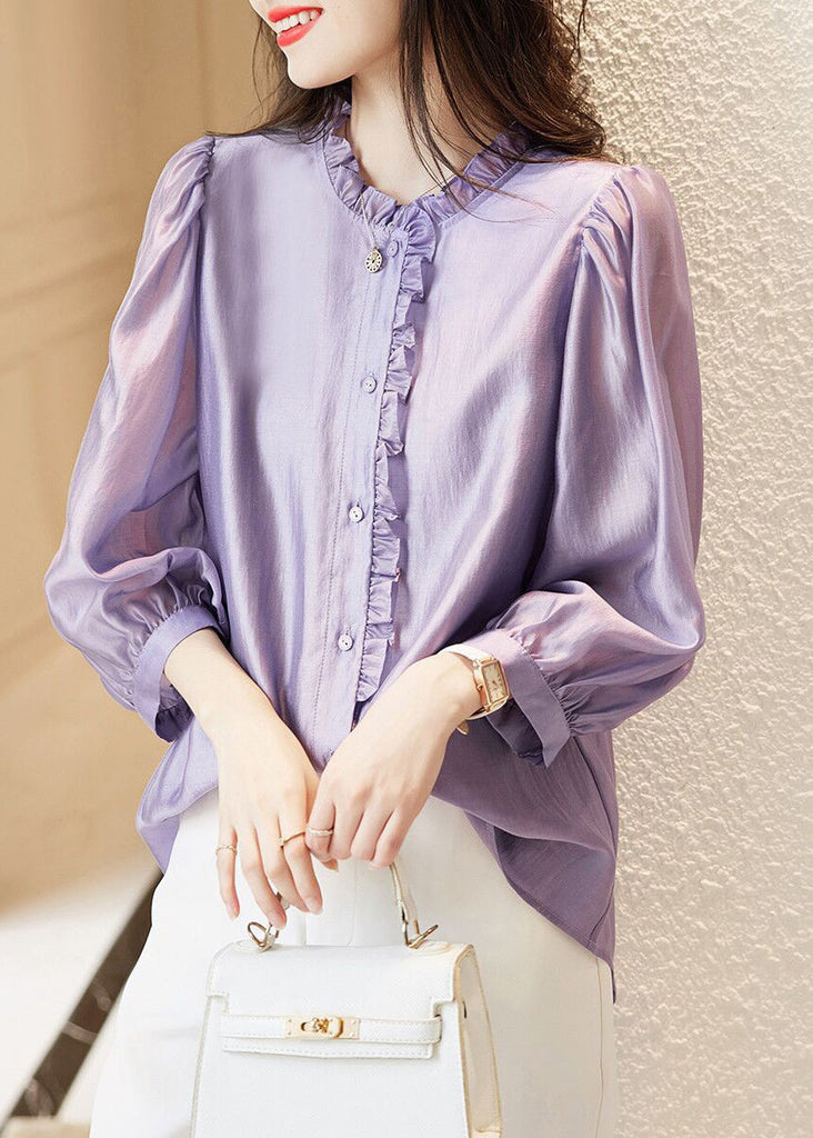 French Purple Ruffled Button Chiffon Shirts Long Sleeve AB1001