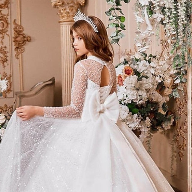 Gender: Girls', Age Group: Kids, Style: Sweet, Princess, Occasion: Performance, Wedding, Party, Kids Apparel: Flower Girl Dress, Party Dress, Fabric: Mesh, Pattern: Solid Color, Sleeve Length: Long Sleeve, Design: Mesh, Age: 2-12 Years, Season: Summer, Fall, Spring, Look After Me: Hand wash, Elasticity: Inelastic, Fit Type: Tailored Fit, Dresses Type: Sheath Dress, Tulle Dress, Dress Length (cm): Mid-Calf, Neckline: Crew Neck,