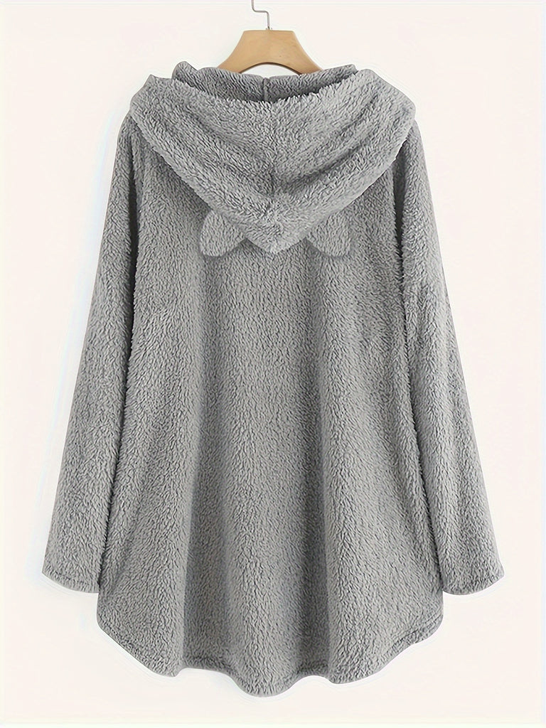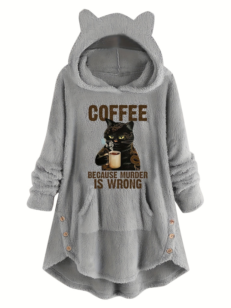 Graphic Print Fluffy Loose Cat Ears Hoodie RK7354
