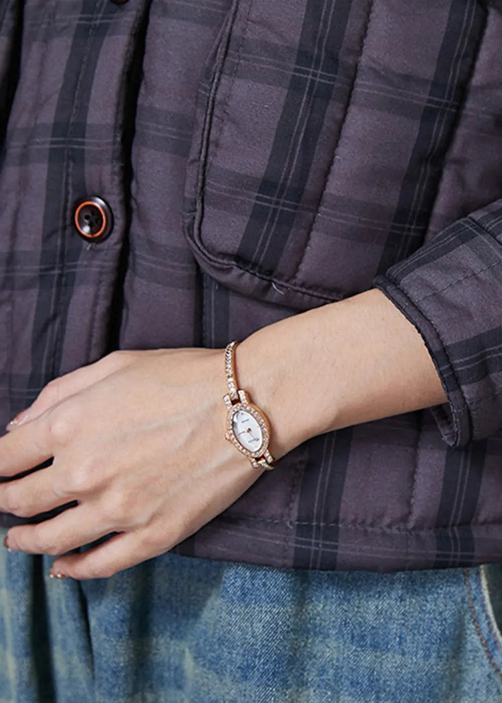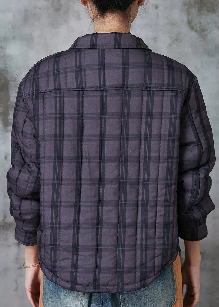 Handmade Purple Plaid Pockets Fine Cotton Filled Women Witner CoatsFabric: Cotton Filled