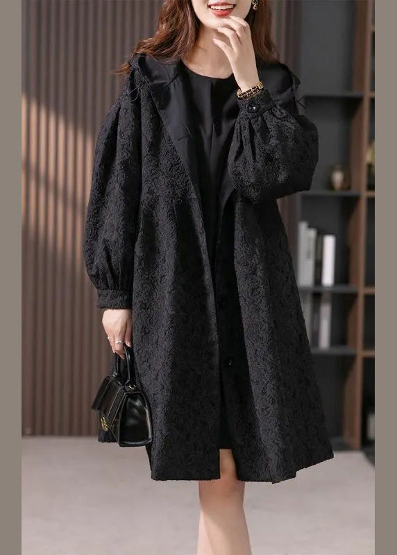 The Jacquard Black Button Hooded Long Coats Jacket LY1741 is evocative, to say the least, but that's why you're drawn to it in the first place.
