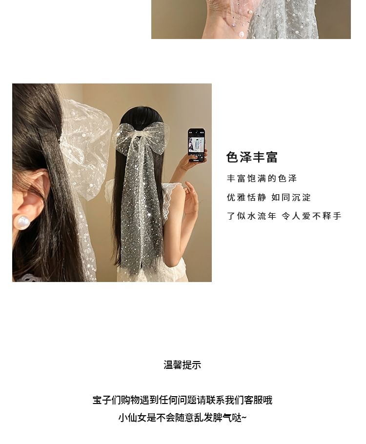 The Lace Bow Clip Hair Sequined is the yin, to your yang. You've found what you're looking for.