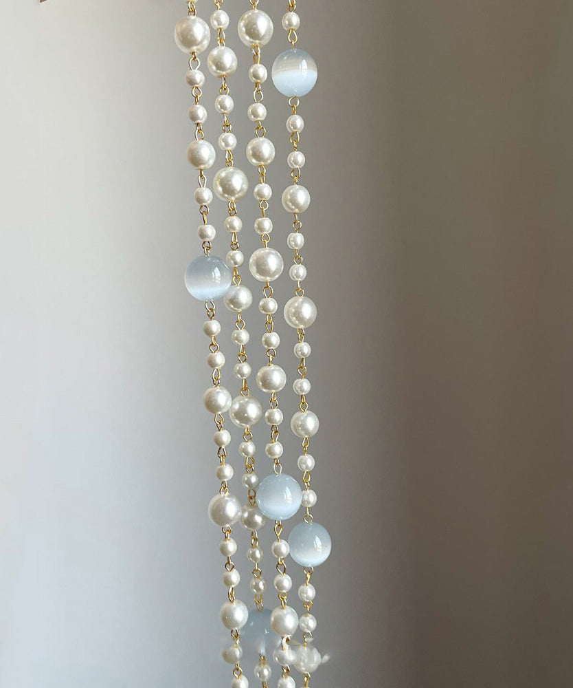 Art Gold Alloy Pearl Cat's Eye Stone Layered Gratuated Bead Necklace