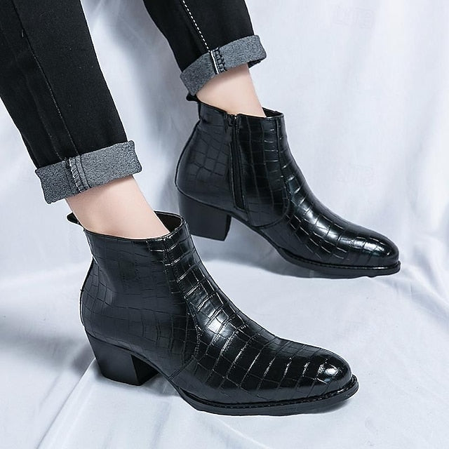 Leather - Faux Boots Men's Pattern Crocodile Ankle Brown FashionChic