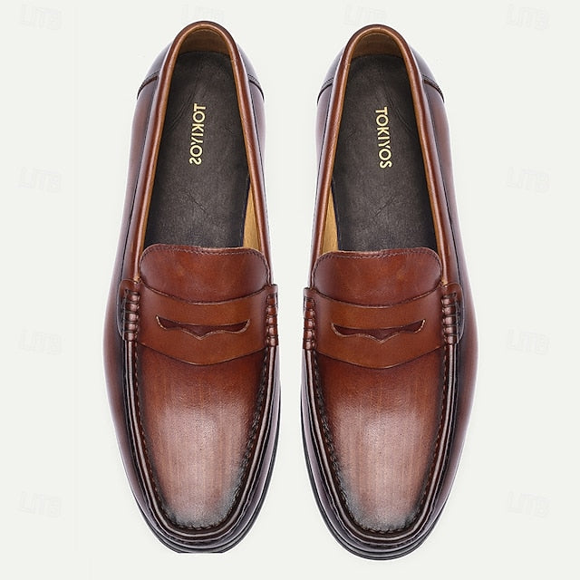 Men's Brown Leather Penny Loafers Slip-On Shoes with