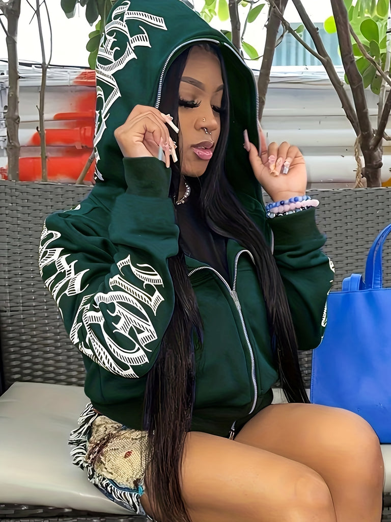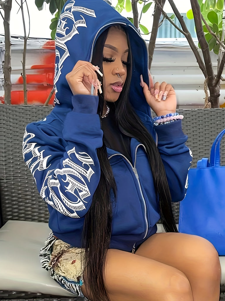 Letter Print Long Sleeve Zip Up Hoodies RG2041