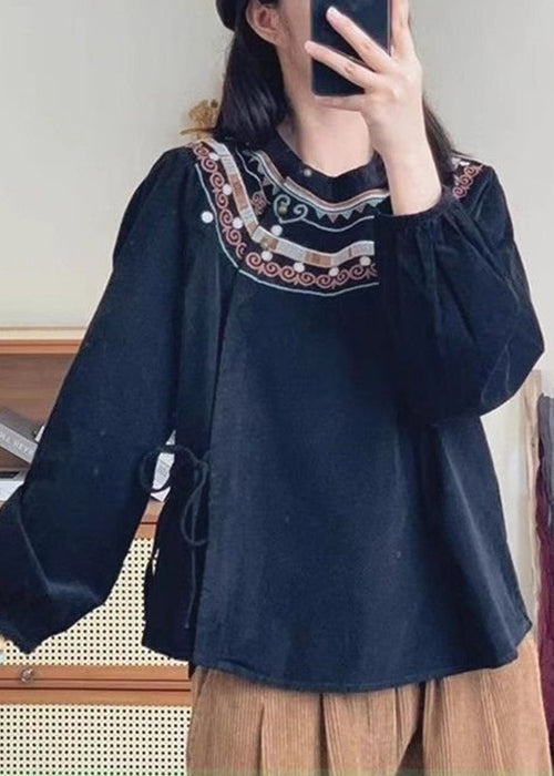 Loose Apricot Lace Up Button Print Cotton Shirt Long Sleeve AB1030